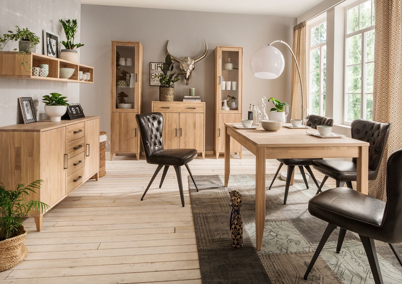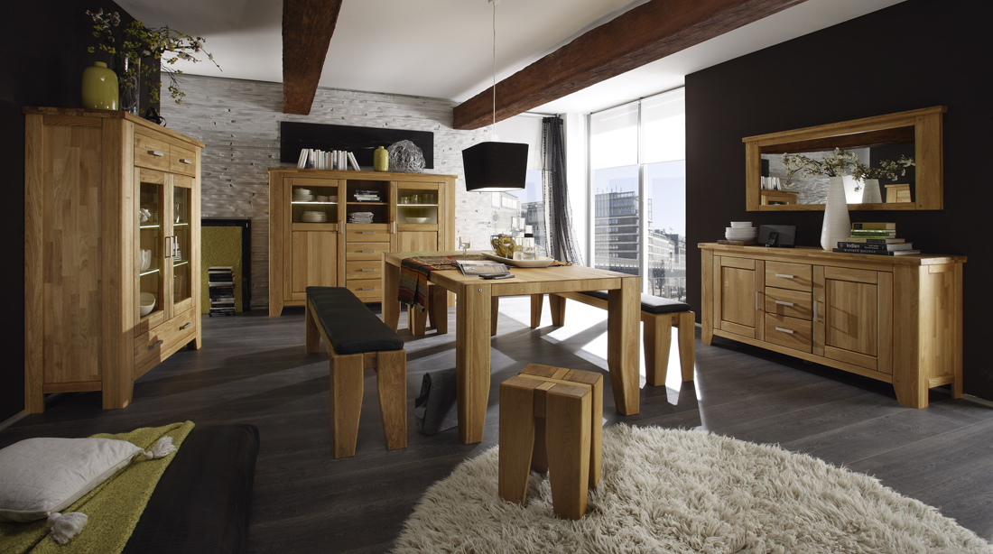 Massive Eiche in unterschiedlichen Beiztönen